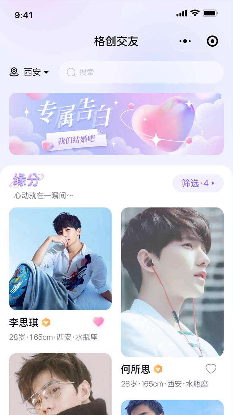 格创婚恋相亲交友系统是一款专为当今社会下青年男女设计的小程序APP,它操作简单,容易上手,而且因为现在的年轻人时间比较紧张,没有太多的空闲去考虑自己的个人问题,格创婚恋相亲交友小程序APP就是根据年轻人的现状而设计出来的,让小程序APP做”红娘”